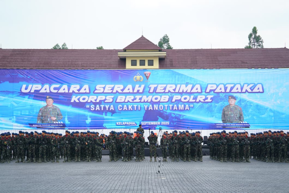 Haluanberitarakyat.com. Depok, 30 September 2025 – Suasana khidmat menyelimuti Lapangan Mako Korps Brimob Polri, Kalapadua, Cimanggis, Depok, saat Pataka Korps Brimob Polri “Satya Cakti Yanottama” resmi berpindah tangan. Pataka kebanggaan yang diberikan Presiden RI pertama, Ir. Soekarno, pada 14 November 1961 itu kini diserahkan dari Komjen Pol. Imam Widodo kepada Irjen Pol. Ramdani Hidayat, menandai babak baru kepemimpinan Korps Brimob Polri.